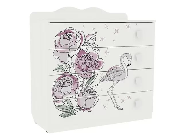 Стильный и модный комод детской «Фэнтези» - обрадует каждого ребенка. В 4 удобных выдвижных ящиках разместятся все необходимые вещи. Необычный принтерный рисунок на фасадах выдержан в общем стилистическом решении. Рисунок устойчив к истиранию и ультрафиолету.