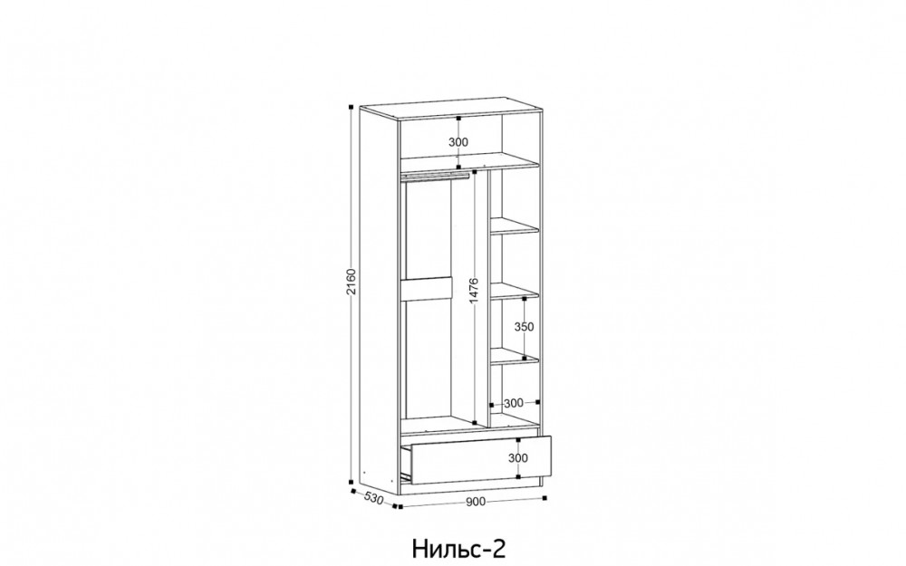 *Размеры (ВхШхГ), мм:2160х900х530 мм