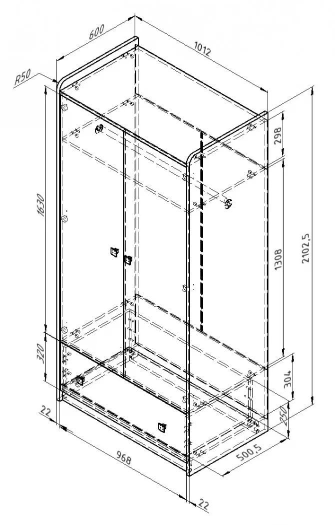 *Размеры (ВхШхГ), мм:2103х1020х600 мм