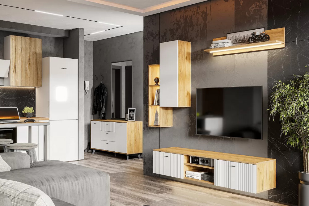 Цвет:Дуб Золотой/Олива Софт, Дуб Золотой/Белый Матовый
