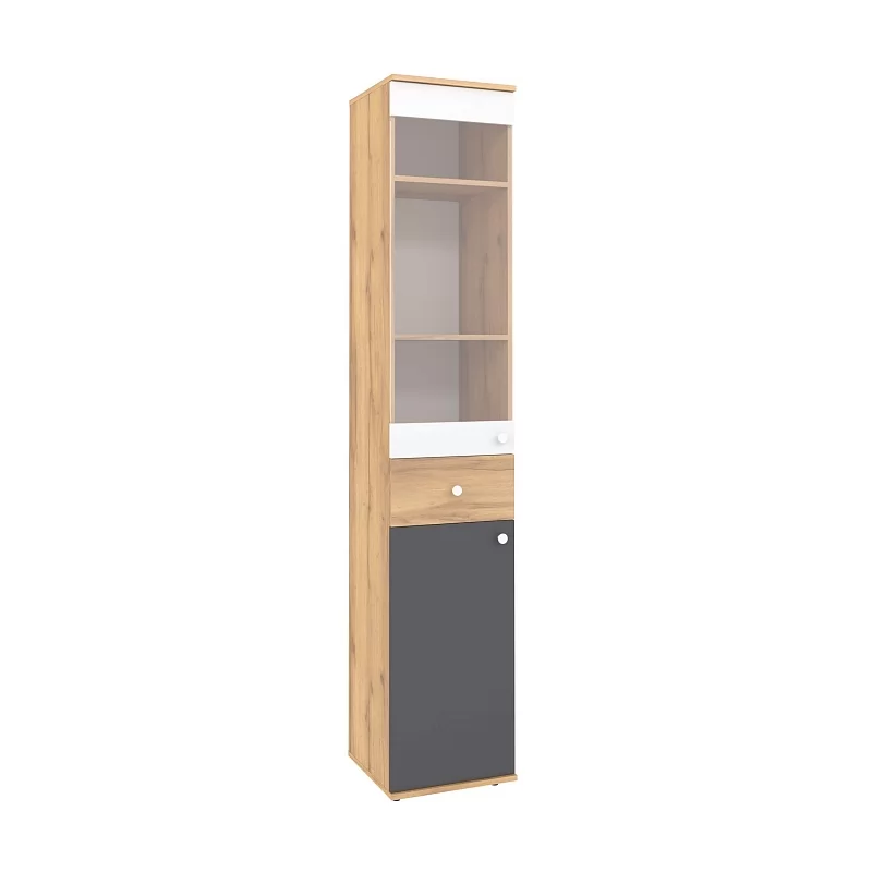Функциональный и удобный Шкаф МЦН для книг поможет систематизировать хранение учебников и другой литературы. Чтобы было проще найти нужную книгу, верхний фасад шкафа выполнен из прозрачного стекла. В выдвижном ящике на шариковых направляющих удобно хранить разные мелочи и аксессуары. За нижним глухим фасадом - ниша с полочкой, которая устанавливается на скрытые полкодержатели. Верхний и нижний фасады можно перенавесить на левую и на правую стороны.