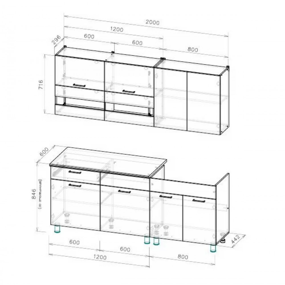 Размеры (см): ширина - 200, высота - 214, глубина - 60.Материал: ЛДСП.Цвет: венге, дуб сонома.Стиль: современный.Особенности:Готовая кухня Босфор выполнена в красивом контрастном сочетании цветов дуб венге и дуб сонома, что позволяет ей гармонично вписаться в любой интерьер.Кухонный гарнитур состоит из двух навесных шкафов шириной 80 см и 120 см и также двух напольных модулей шириной 80 см и 120 см соответственно.Верхний шкаф 80 см оснащен двумя полками и двустворчатым фасадом, 120 см - с двумя горизонтальными откидными фасадами и 4-мя полками.Напольный шкаф 80 см без столешницы рассчитан под мойку и его открытая задняя стенка удобна для монтажа необходимых коммуникаций.Напольный шкаф 120 см со столешницей толщиной 26 мм и выдвижным ящиком на шариковых направляющих подойдет для организации рабочей зоны на кухне.На фасадах навесных шкафов отсутствуют фурнитура (кроме верхней горизонтальной створки) и открываются за нижний торец.На фасадах напольных шкафов установлены стильные ручки-скобы.Гарнитур изготовлен из ЛДСП, этот материал прост в уходе, обладает высокой устойчивостью к механическим воздействиям.Регулируемые опоры позволяют надежно установить напольный модуль на любой поверхности.Смеситель и мойка в комплектацию не входят, приобретаются отдельно.Реальный цвет товара может отличаться от цвета товара на фотографии.Объем товара (м3): 0,22.Производитель: Россия.Вес: 113 кг.Количество упаковок: 6.