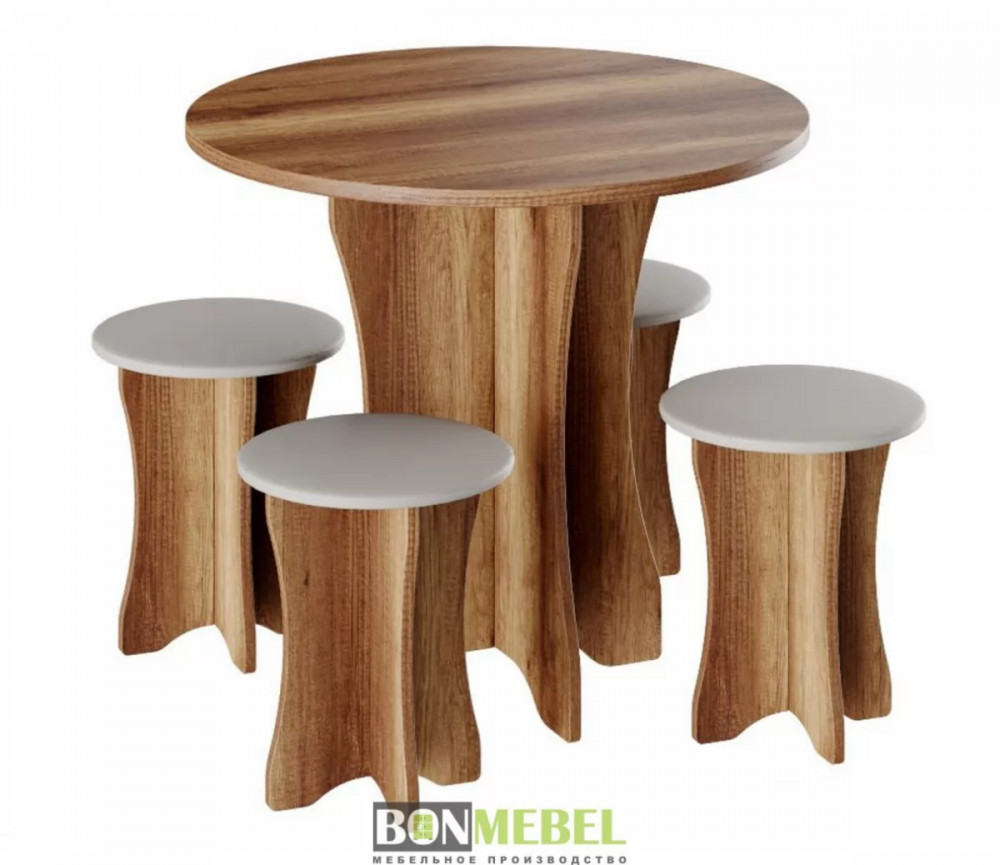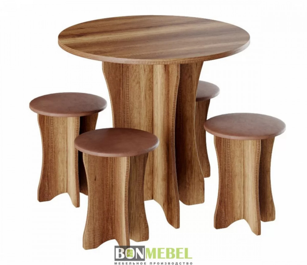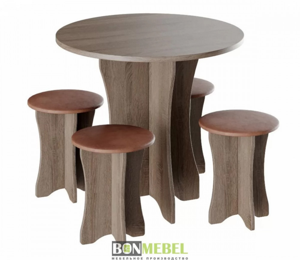 Обеденная группа Тип-6 отличается простым, но привлекательным стилем. Композиция без труда вольется в любой современный интерьер, сделав кухонное пространство более практичным и уютным. Обивка из экокожи обладает износостойкостью, устойчивостью к загрязнениям и не прихотлив в уходе. Мягкие сиденья табуретов имеют мягкий и упругий слой, что создает максимально комфортные условия для сидящего. Классическое контрастное сочетание цветов сделает любой интерьер интересным и гармоничным. Для изготовления моделей используется прочная ЛДСП. Обивка табуретов произведена из искусственной кожи.