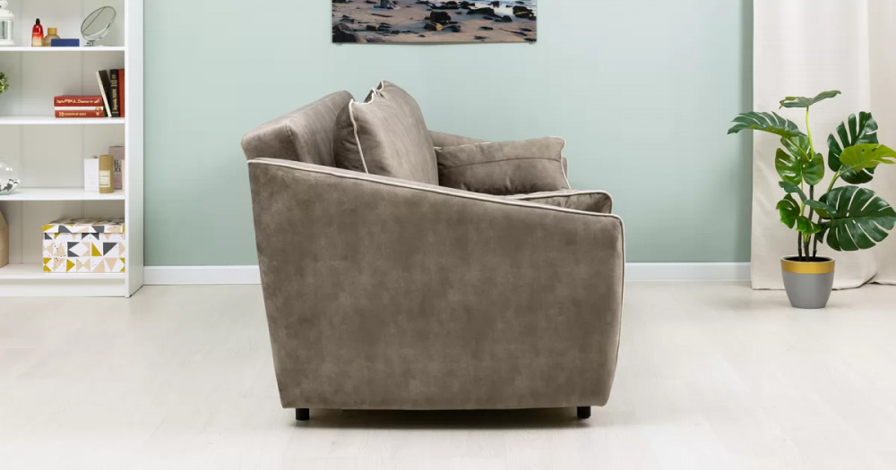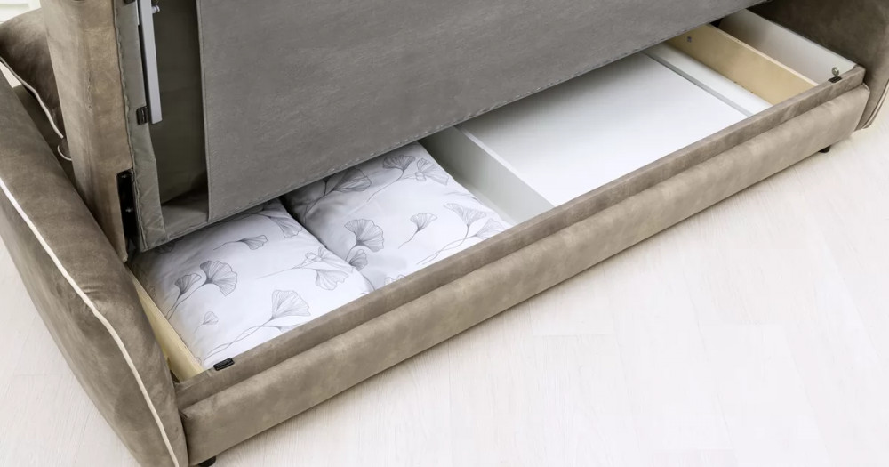 Габаритысложенный (Д x Г х В, мм): -2260 x 1090 x 920разложенный (Д x Г х В, мм): -2260 x 1340 x 750спальное место (Д x Ш, мм): -1980 x 1340высота посадки (мм): -445глубина сиденья (мм): -600высота спинки (мм): -560высота подлокотника от сиденья (мм): -150-300максимально допустимая нагрузка: -240 кг на диванМеханизм трансформации-Книжка с 0 стенойБельевой ящик-есть с перегородкой по центру (2 отделения)размер отделения (Д x Ш, мм): - 890 x 840 x 140Материалыосновная ткань: Greta (велюр)выполняется в тканях: Greta Stone (серо-коричневый)/Greta Bone (слоновая кость)каркас: фанера-деревянный брус