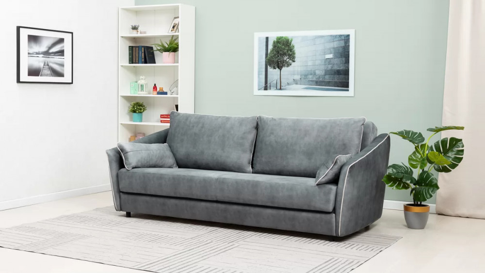 Габаритысложенный (Д x Г х В, мм): -2260 x 1090 x 920разложенный (Д x Г х В, мм): -2260 x 1340 x 750спальное место (Д x Ш, мм): -1980 x 1340высота посадки (мм): -445глубина сиденья (мм): -600высота спинки (мм): -560высота подлокотника от сиденья (мм): -150-300максимально допустимая нагрузка: -240 кг на диванМеханизм трансформации-Книжка с 0 стенойБельевой ящик-есть с перегородкой по центру (2 отделения)размер отделения (Д x Ш, мм): - 890 x 840 x 140Материалыосновная ткань: Greta (велюр)выполняется в тканях: Greta Grafit (серый)/Greta Bone (слоновая кость)каркас: фанера-деревянный брус ДСП ДВПприспинные подушки, шт: -2съемные чехлы приспинных подушек: -естьдекоративные подушки, шт: -2наполнитель подушек: -крошка ППУ и полиэфирное волокно «шарики»цвет опор: -Опора регулируемая, круглая, чернаявысота опор (мм): -60Декор-Подлокотники с выраженным контрастным кантом по внешнему контуру изделия. Декоративные подушки оформлены декоративной отстрочкой «зигзаг».
