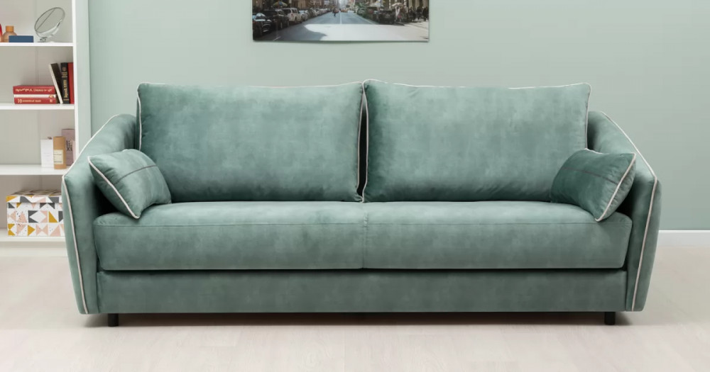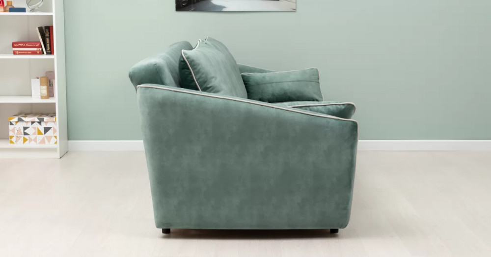 Габаритысложенный (Д x Г х В, мм): -2260 x 1090 x 920разложенный (Д x Г х В, мм): -2260 x 1340 x 750спальное место (Д x Ш, мм): -1980 x 1340высота посадки (мм): -445глубина сиденья (мм): -600высота спинки (мм): -560высота подлокотника от сиденья (мм): -150-300максимально допустимая нагрузка: -240 кг на диванМеханизм трансформации-Книжка с 0 стенойБельевой ящик-есть с перегородкой по центру (2 отделения)размер отделения (Д x Ш, мм): - 890 x 840 x 140Материалыосновная ткань: Greta (велюр)выполняется в тканях: Greta Jade (светлый хвойно-зеленый)/Greta Bone (слоновая кость)каркас: фанера-деревянный брус ДСП ДВПприспинные подушки, шт: -2съемные чехлы приспинных подушек: -естьдекоративные подушки, шт: -2наполнитель подушек: -крошка ППУ и полиэфирное волокно «шарики»цвет опор: -Опора регулируемая, круглая, чернаявысота опор (мм): -60Декор-Подлокотники с выраженным контрастным кантом по внешнему контуру изделия. Декоративные подушки оформлены декоративной отстрочкой «зигзаг».