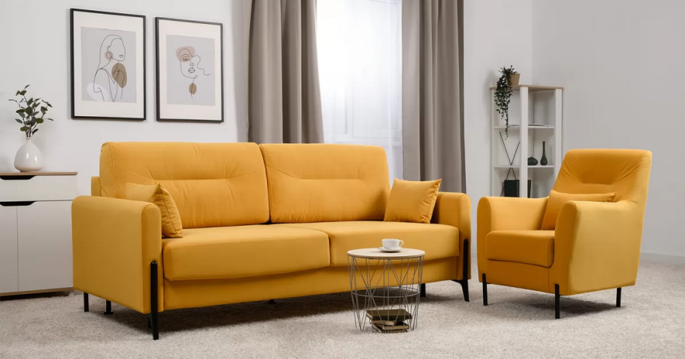 • Металлические опоры плавно переходят в декоративный элемент подлокотника. Декоративная утяжка по приспинным подушкам