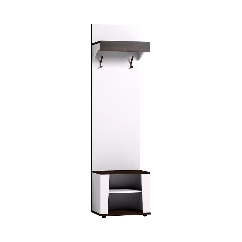 Модуль Норвуд 74 просто создан для небольшой прихожей. Вешалка с двумя крючками, стационарной штангой и открытой нишей сможет разместить сезонную одежду небольшой семьи. Контрастные темные горизонтальные детали в декоре Орех Шоколадный, брашированная вставка из дерева - отличительные особенности коллекции Норвуд. Модуль рекомендуем крепить к стене с помощью подвесов.