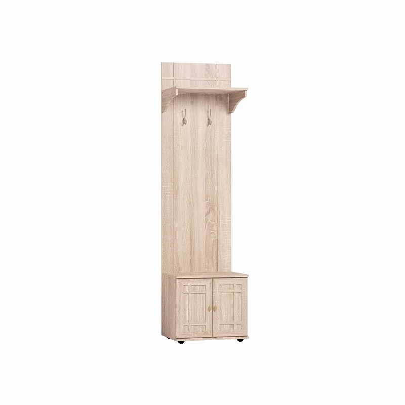 Узкая маленькая прихожая - вовсе не проблема. В простенок шириной всего 56 см может поместиться 7 плечиков с верхней одеждой, несколько курток на крючках, сумки и портфели. И все это на стойке-вешалке! Обязательно крепление к стене на подвесы. Стационарная штанга выдерживает нагрузку до 20 кг.