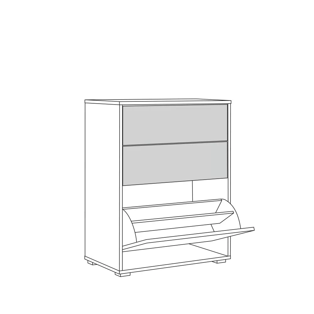 Универсальная тумба-комод "Куба" оснащена откидной обувницей и двумя выдвижными ящиками для аксессуаров и других мелочей