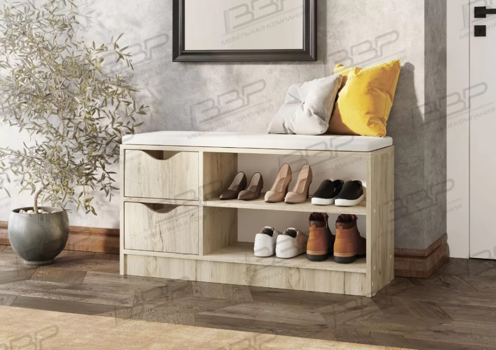 Современная и компактная обувница «Лоредо-1», с мягким основанием и двумя выдвижными ящиками, отлично впишется в самые разные стили современного интерьера.