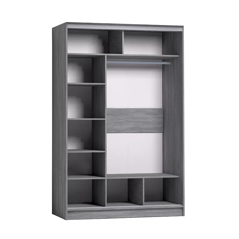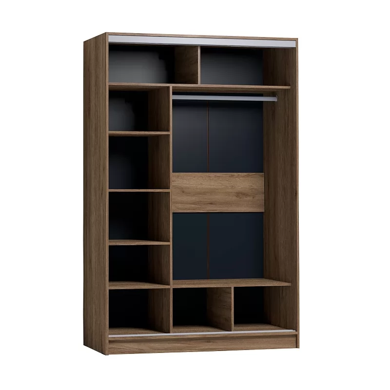 Шкаф-купе STRIKE шириной 1350 мм подойдет для любой комнаты: спальни, гостиной, прихожей, детской. Продуманное внутреннее наполнение шкафа состоит из стеллажа для белья, стационарной штанги длиной 843 мм. В изготовлении шкафов-купе STRIKE использована прочная стальная система треков «Найди» цвета Металлик. Двери шкафов дополнены ручками из массива и шлегелем, который смягчает удары дверей при закрывании, а также защищают вещи от попадания пыли. Благодаря скрытым полкодержателям полки жестко крепятся на необходимой высоте.