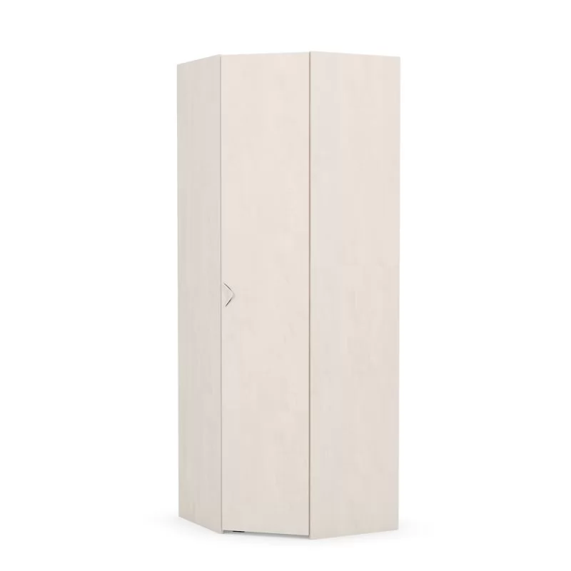 Угловой шкаф для одежды "Амели" комплектуется штангой, широкой антресольной полкой и боковой секцией с 4 полками.