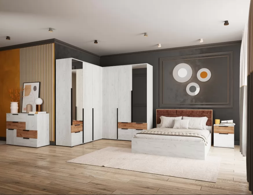 Спальня №2 Лилль Дуб крафт белый/дуб крафт табачный в Губкинском