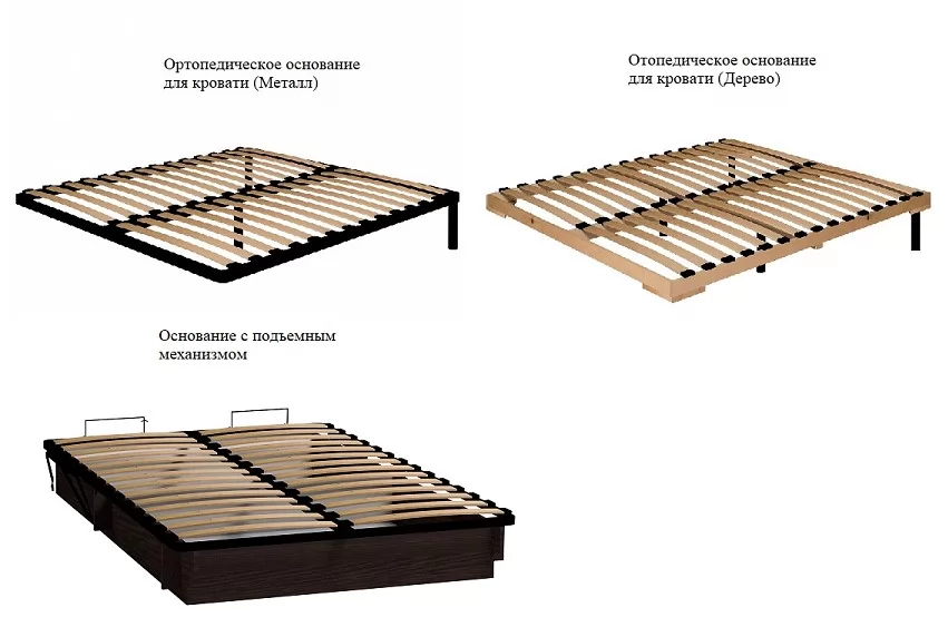 ОснованиеЛамели (металл), Ламели (дерево), Ортопедическое с подъемным механизмом