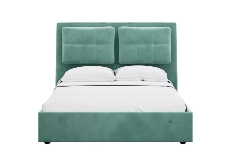 Кровати выполнены в нейтральных и в ярких тканях велюр, что позволяет подобрать подходящий вариант почти под любой интерьер. В качестве декора применяются декоративные подушки на изголовье.