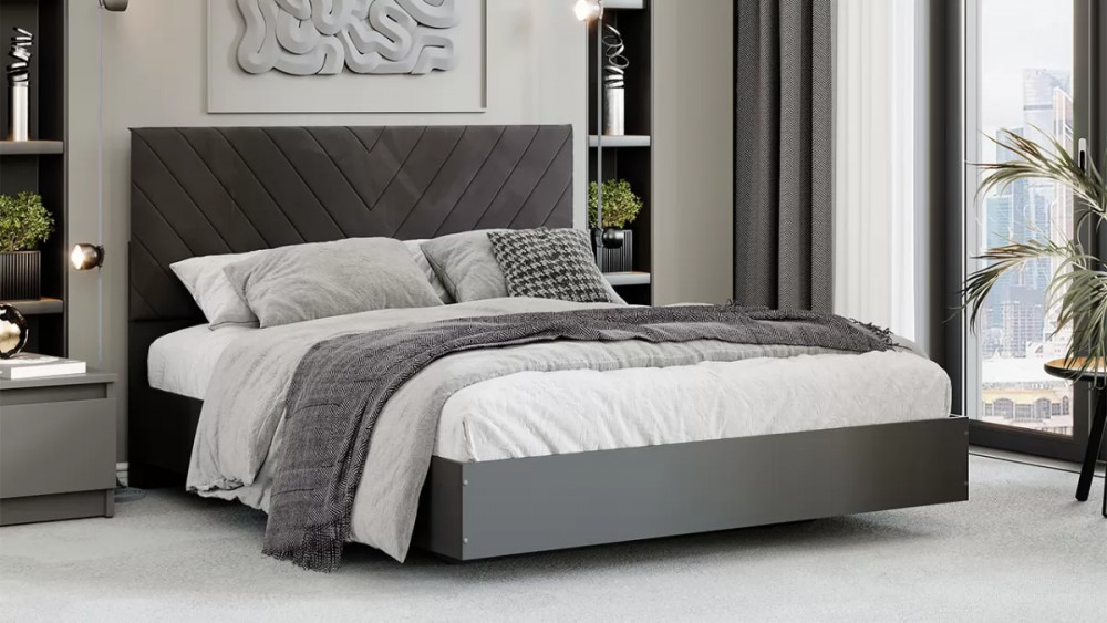 Кровать «Бетта» Тип 1 Серый графит, Велюр Серый в Губкинском