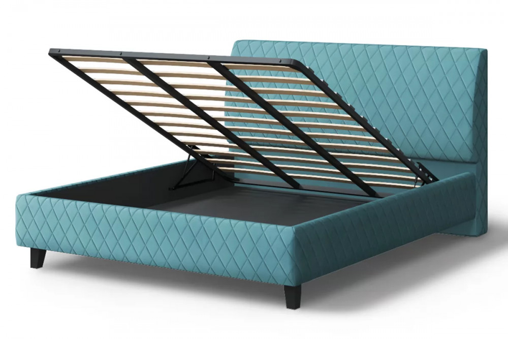 Материал ножек, опоры: Массив Высота, мм: 1018 Ширина, мм: 1370 Длина, мм: 2240 Вес, кг: 53.45 Цвет ножек: Черный Материал корпуса: ДСП, ДВП, массив березы, ткань Цвет корпуса: Бирюзовый Короб для белья: Нет Основание: Настил из латофлексов Подъемный механизм: Нет Спальное место, мм: 1200 / 2000 Цвет спинки: Бирюзовый