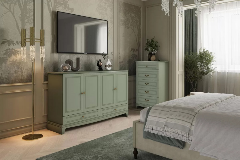 • Комод 4 двери + 2 ящика Лорето Лак Зелёный самшит