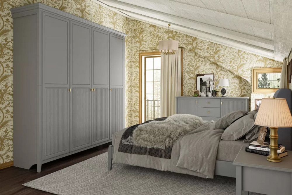 Модульная спальня Никеа Серый шифер/Лак Антрацит в Губкинском
