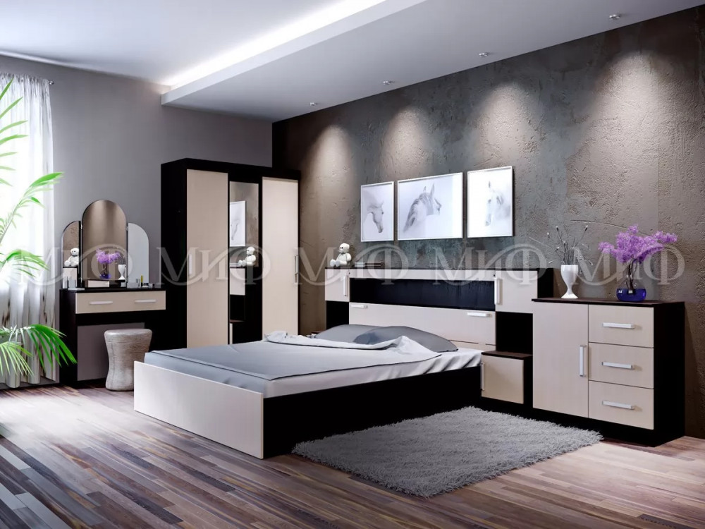 Спальный гарнитур Басямиф, дуб беленый/венге в Губкинском