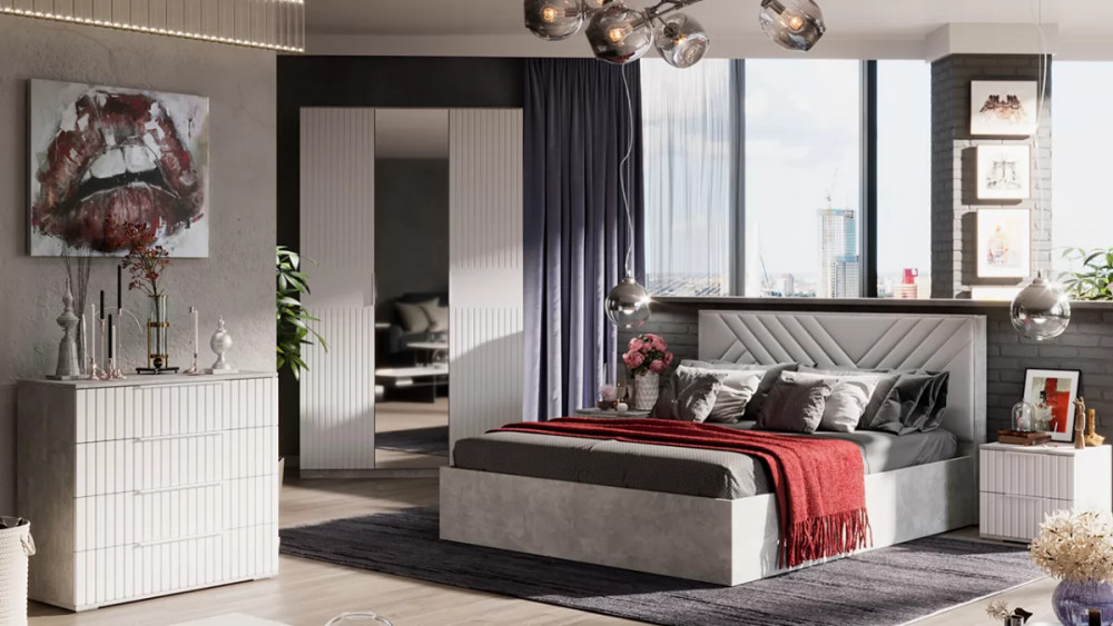 Спальный гарнитур с 3-х створчатым шкафом и комодом Анталия Сонома-Белый софт