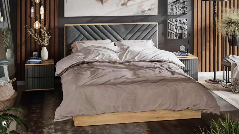 Спальня «Хилтон» Дуб Крафт золотой, Графит матовый в Губкинском