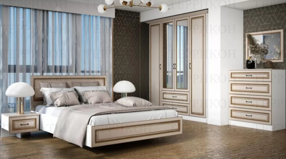 • Кровать Женева Модуль №5, 1600*2000 мм, белый/софт светлый патина золото 1 шт