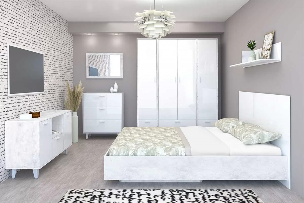 Кровать Эго арт. 031, 1600*2000 мм, бетон светлый/белый глянец 1 шт